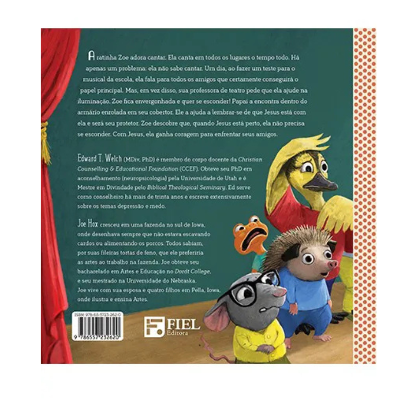 A ratinha Zoe adora cantar. Ela canta em todos os lugares o tempo todo. Há apenas um problema: ela não sabe cantar. Um dia, ao fazer um teste para o musical da escola, ela fala para todos os amigos que certamente conseguirá o papel principal. Mas, em vez disso, sua professora de teatro pede que ela ajude na iluminação. Zoe fica envergonhada e quer se esconder! Papai a encontra dentro do armário enrolada em seu cobertor. Ele a ajuda a lembrar-se de que Jesus está com ela e será seu protetor. Zoe descobre que, quando Jesus está perto, ela não precisa se esconder. Com Jesus, ela ganha coragem para enfrentar seus amigos.