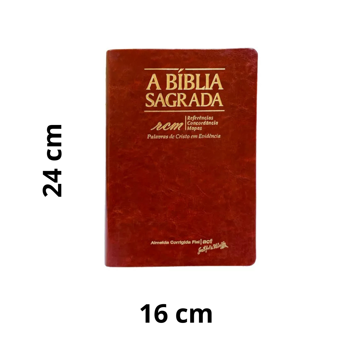 A Bíblia RCM (Referências, Concordância e Mapas) é uma das Bíblias mais amadas, tanto pelo texto ACF como por sua diagramação e recursos adicionais. A versão Almeida Corrigida Fiel | acf (revisado segundo o novo acordo ortográfico da língua portuguesa em 2011) é uma tradução fiel do Velho Testamento em Hebraico (Massorético) e do Novo Testamento em Grego (Textus Receptus), segundo o método de tradução formal (traduzindo cada palavra e mantendo a beleza linguística). Esta Bíblia tem tanto formato como letras gigantes. Possui as Palavras de Cristo em Evidência, Referências, Concordância e Mapas (RCM): Mais de 30.000 referências bíblicas (com conversão de pesos e medidas), Concordância bíblica abreviada completíssima (auxílio para encontrar versículos na Bíblia), 16 mapas coloridos (elaborados pela Carta ©, Jerusalém); Subtítulos (auxílio para encontrar passagens bíblicas); Glossário (um pequeno dicionário) e Margens para Anotações. Bíblia Premium, capa sintética luxo na cor mogno. Impresso na SWPress.