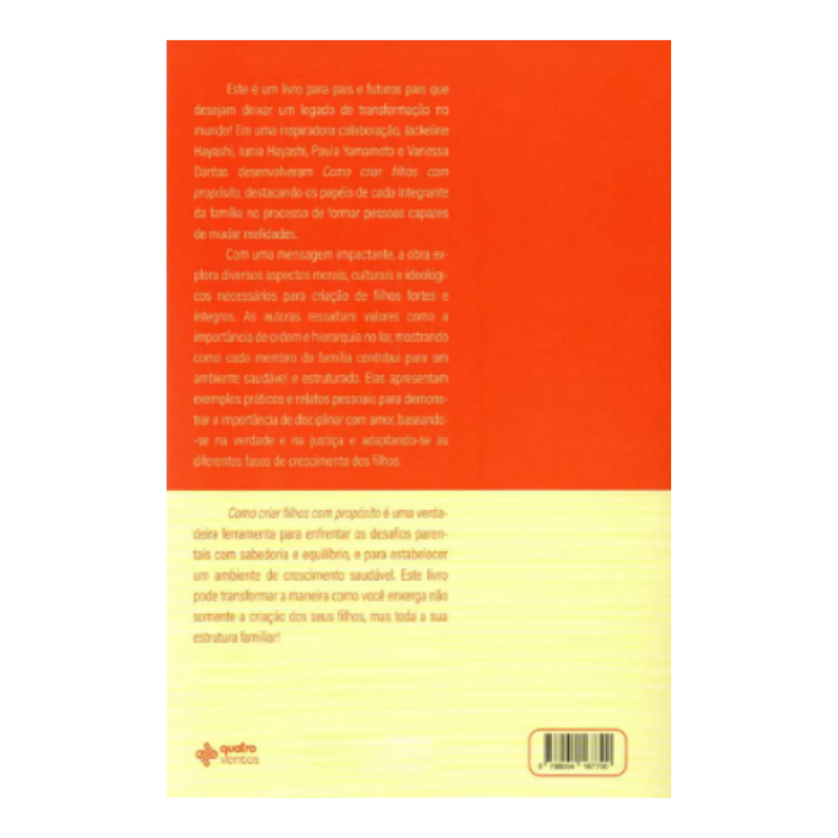 Este é um livro para pais e futuros pais que desejam deixar um legado de transformação no mundo! Em uma inspiradora colaboração, Jackeline Hayashi, Junia Hayashi, Paula Yamamoto, e Vanessa Dantas desenvolveram Como criar filhos com propósito, destacando os papéis de cada integrante da família no processo de formar pessoas capazes de mudar realidades.