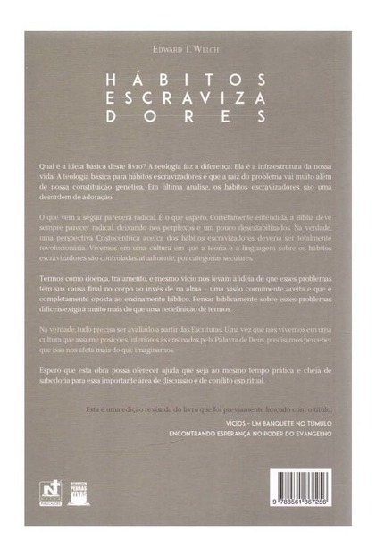 O autor trata da questão do vício ou hábito escravizador por uma perspectiva bíblica, profunda e equilibrada. Ele nos redireciona de um entendimento puramente horizontal da experiência com o hábito escravizador, isto é, do homem para com aquilo que o domina, para uma perspectiva vertical, do homem para com Deus. Dessa maneira, vício ganha novos entendimentos que nos remetem à Palavra de Deus. Dr. Welch tira os nossos olhos do vício como sendo apenas aquilo que nos domina quimicamente e lança novos olhares sobre a palavra definindo-a como desejos intensos e desordenados por chocolate, exercícios físicos, cocaína, compras, pornografia, TV, álcool, fama, sucesso, sejam eles quais forem. O resultado é que vício ou hábito escravizador, na abordagem do autor, é em sua essência, idolatria, e, portanto, relaciona diretamente o homem a Deus. Neste sentido, uma vez que hábito escravizador está inseparavelmente ligado ao relacionamento do homem com Deus, a solução para o seu problema passa pela cruz de Cristo, pela Palavra de Deus, por submissão, arrependimento, confissão, entrega pessoal ao Senhor e renúncia.