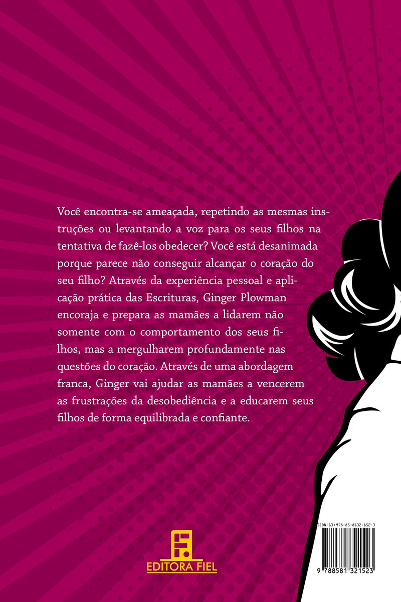 Você encontra-se ameaçada, repetindo as mesmas instruções ou levantando a voz para os seus filhos na tentativa de fazê-los obedecer? Você está desanimada porque parece não conseguir alcançar o coração do seu filho? Através da experiência pessoal e aplicação prática das Escrituras, Ginger Plowman encoraja e prepara as mamães a lidarem não somente com o comportamento dos seus filhos, mas a mergulharem profundamente nas questões do coração. Através de uma abordagem franca, Ginger vai ajudar as mamães a vencerem as frustrações da desobediência e a educarem seus filhos de forma equilibrada e confiante.