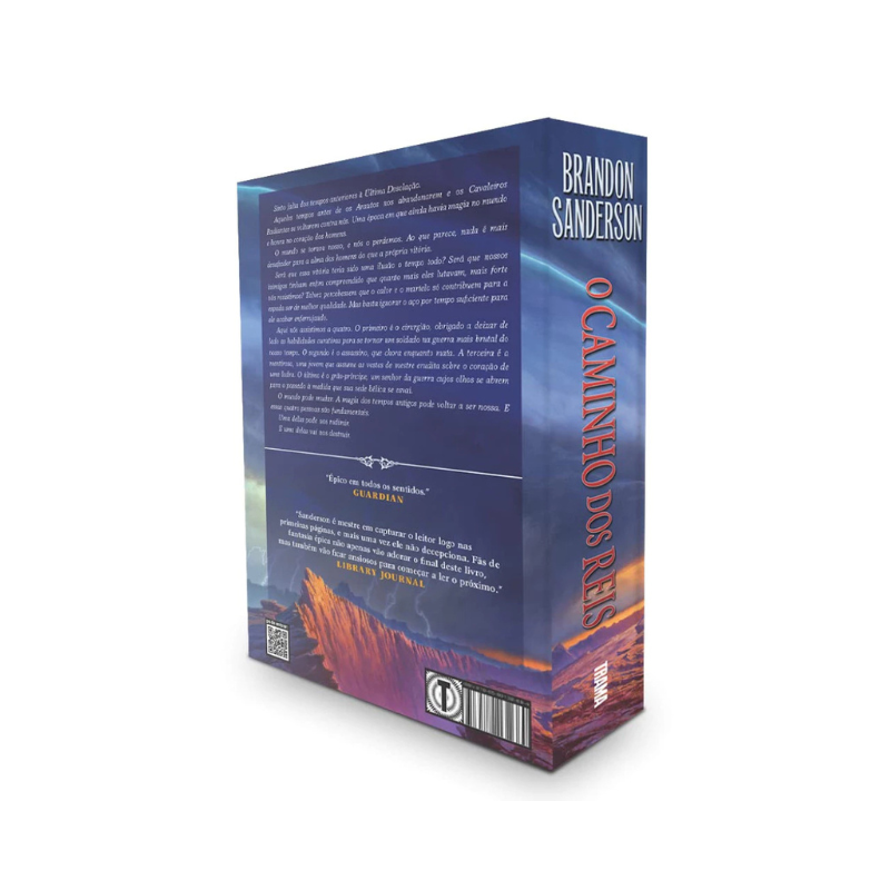 “O Caminho dos Reis”, do autor best-seller Brandon Sanderson, é o primeiro livro de uma épica saga que se passa em Roshar, um mundo moldado por tempestades e pedras. Centenas de anos após a queda dos lendários Cavaleiros Radiantes, suas poderosas Armaduras e Espadas Fractais ainda influenciam guerras e reinos. Kaladin, um escravo forjado pelo conflito, luta para manter sua humanidade enquanto lidera seus homens em meio a uma guerra aparentemente sem sentido. Enquanto isso, Dalinar Kholin e sua sobrinha, Shallan, embarcam em jornadas que revelam segredos antigos e desencadeiam eventos que podem mudar o destino de Roshar. Com uma trama intricada e personagens cativantes, este livro inaugura uma obra-prima de grande magnitude, os Relatos da Guerra das Tempestades, onde a esperança ressoa nos antigos juramentos: Vida antes da morte. Força antes da fraqueza. Jornada antes do destino. E que os Cavaleiros Radiantes se ergam novamente.