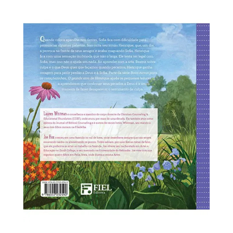 Quando coloca aparelho nos dentes, Sofia fica com dificuldade para pronunciar algumas palavras. Isso irrita seu irmão Henrique, que, um dia, a provoca na frente de seus amigos e acaba magoando Sofia. Henrique fica com uma sensação incômoda que não o larga. Ele tenta ser legal com Sofia, mas isso não o ajuda em nada. Ao aprender com a srta. Beatriz sobre culpa e o que Deus quer que façamos quando pecamos, Henrique ganha coragem para pedir perdão a Deus e à Sofia. Parte da série Boas-novas para os coraçõezinhos, “O grande erro de Henrique” ajuda os pequenos leitores a aprenderem que confessar seus pecados a Deus é a única maneira de fazer desaparecer o sentimento de culpa.