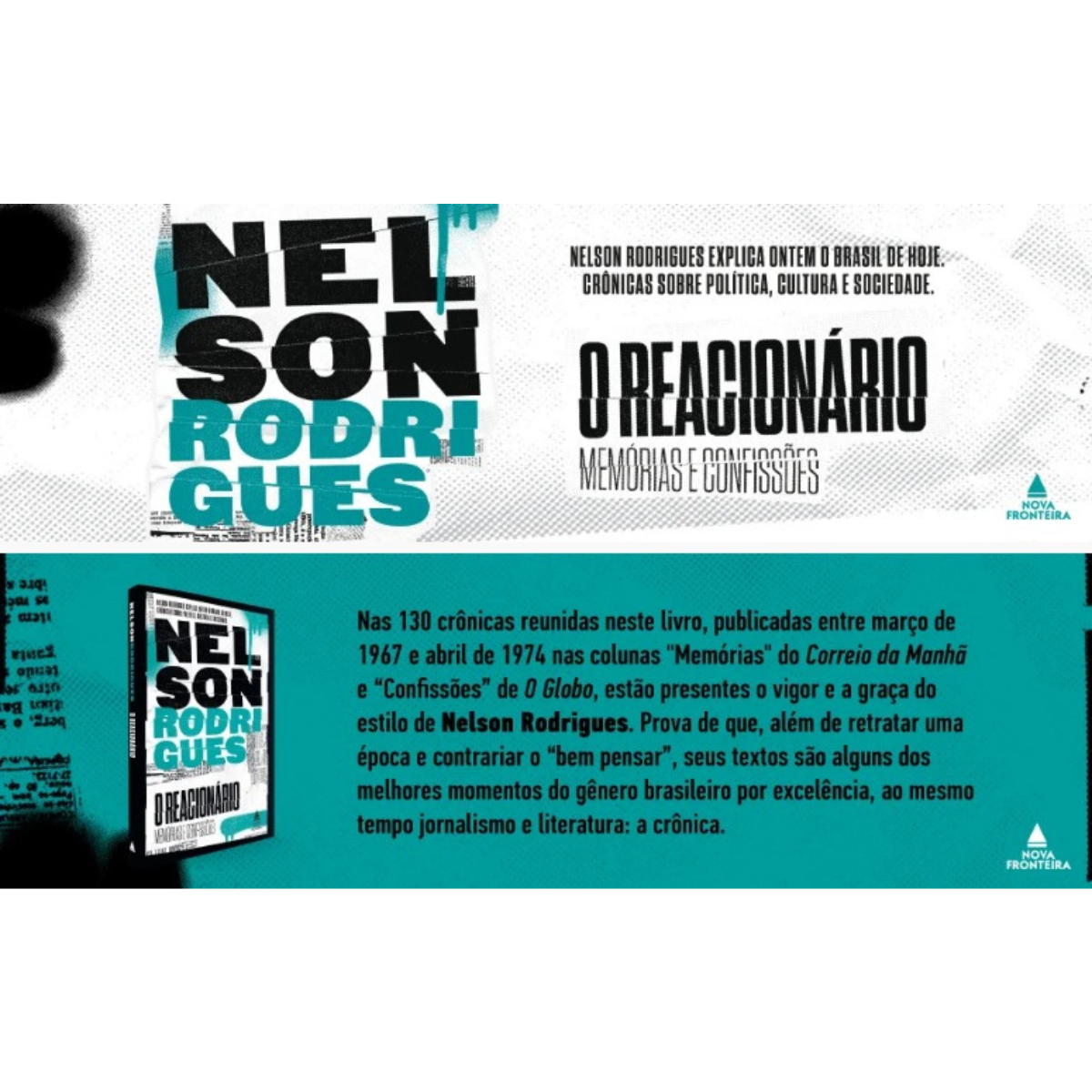 Ao intitular seu último livro de O reacionário, epíteto que, de tanto ouvir ligado ao seu nome, Nelson Rodrigues decidiu assumir para si, o autor resumiu toda a sua história de polemista. Sua obra jornalística, por sua vez, não pode ser relegada simplesmente à polêmica. Como escreveu Gilberto Freyre no prefácio à primeira edição de O reacionário, “o escritor-jornalista ou o jornalista-escritor é o que sobrevive ao jornal. Pode resistir à prova tremenda de passar do jornal ao livro”. Nas 130 crônicas reunidas neste livro, publicadas entre março de 1967 e maio de 1974 nas colunas “Memórias” do Correio da Manhã e “Confissões” de O Globo, estão presentes ao mesmo tempo o vigor e a graça do estilo de Nelson Rodrigues. Prova de que, além de retratar uma época e contrariar o “bem pensar”, seus textos são alguns dos melhores momentos do gênero brasileiro por excelência, ao mesmo tempo jornalismo e literatura: a crônica.