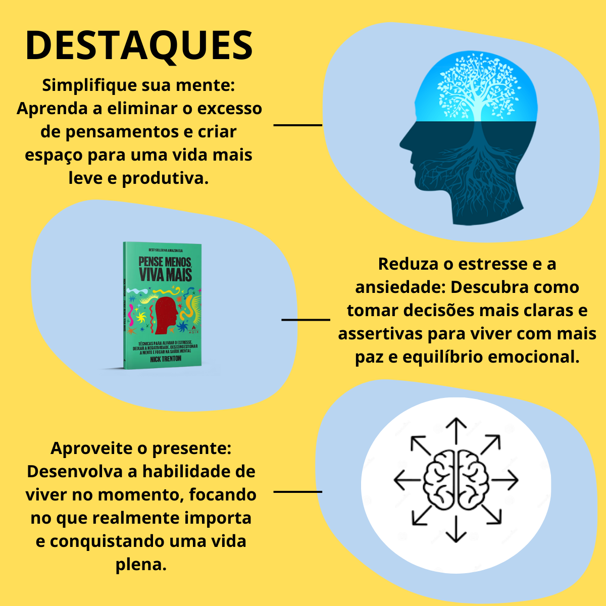 Se você busca uma mudança de perspectiva, onde a paz interior e o equilíbrio emocional são possíveis, Pense Menos, Viva Mais é o guia perfeito. Não é sobre parar de pensar, mas sim sobre saber o que, quando e como pensar, para viver com mais clareza e menos ansiedade.