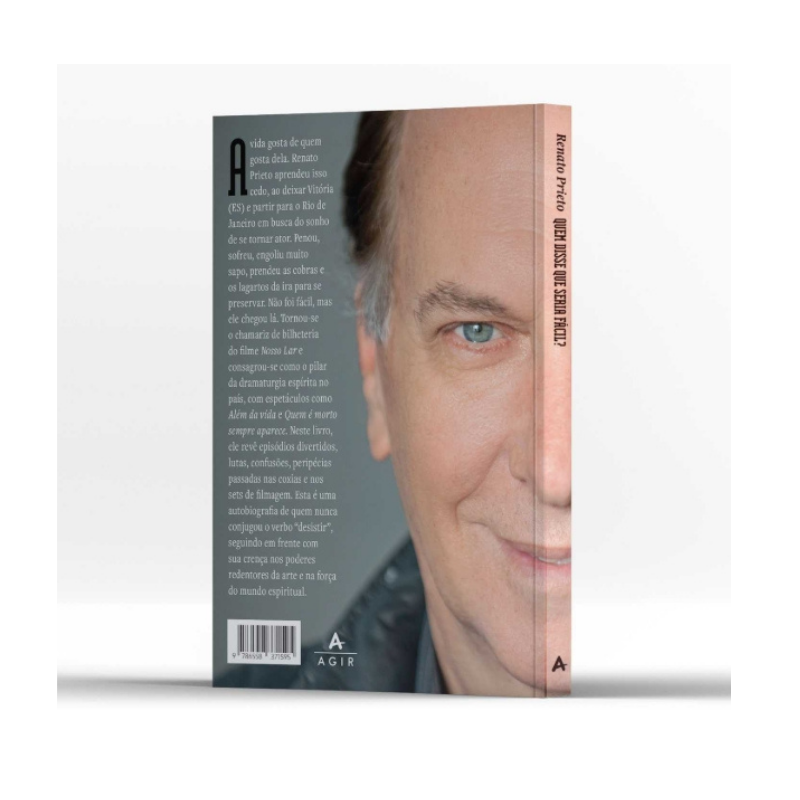 Autor: Renato Prieto Grupo: Espírita Gênero: Biográfico Páginas: 208 Tamanho: 15,70 x 23,00 EAN: 9786558371595 Sinopse A vida gosta de quem gosta dela. Renato Prieto aprendeu isso muito cedo, desde que deixou Vitória, no Espírito Santo, e partiu para o Rio de Janeiro em busca do sonho de se tornar ator. Penou, sofreu, teve que engolir muito sapo (sem nunca aceitar grosserias) e prender as cobras e os lagartos da ira no intuito de se perseverar. Ainda assim, nunca deixou de teimar ou aceitou abrir mão de sua integridade. Não foi fácil, mas ele chegou lá. Levou multidões aos teatros, tornou-se o chamariz de bilheteria do sucesso nos cinemas Nosso Lar (2010) e consagrou-se como o pilar da dramaturgia espírita no país. Sempre fiel a seus estudos de uma doutrina celebrizada ao longo dos tempos por Allan Kardec, Chico Xavier e outras gerações de médiuns, ele ajudou a transformar espetáculos como Além da vida e Quem é morto sempre aparece em marcos das artes cênicas no país. Teve que encarar intolerâncias aqui e ali, que se virar nos 30 a cada novo arrocho na economia brasileira — que sempre pesava na classe artística —, teve e tem que meter as caras para tirar do papel cada nova ideia que tem. Mas quem disse que seria fácil? Neste livro, ele revê os momentos mais difíceis, os episódios mais divertidos, as lutas, as confusões, as peripécias passadas nas coxias e nos sets de filmagem. Como toda boa história, ela tem lugar para lágrimas e muito, mas muito mesmo, espaço para alegria, e, na interseção das duas, há bravura e fé. Esta é uma autobiografia de quem nunca conjugou o verbo “desistir”, seguindo em frente com sua crença nos poderes redentores da arte e na força do mundo espiritual.