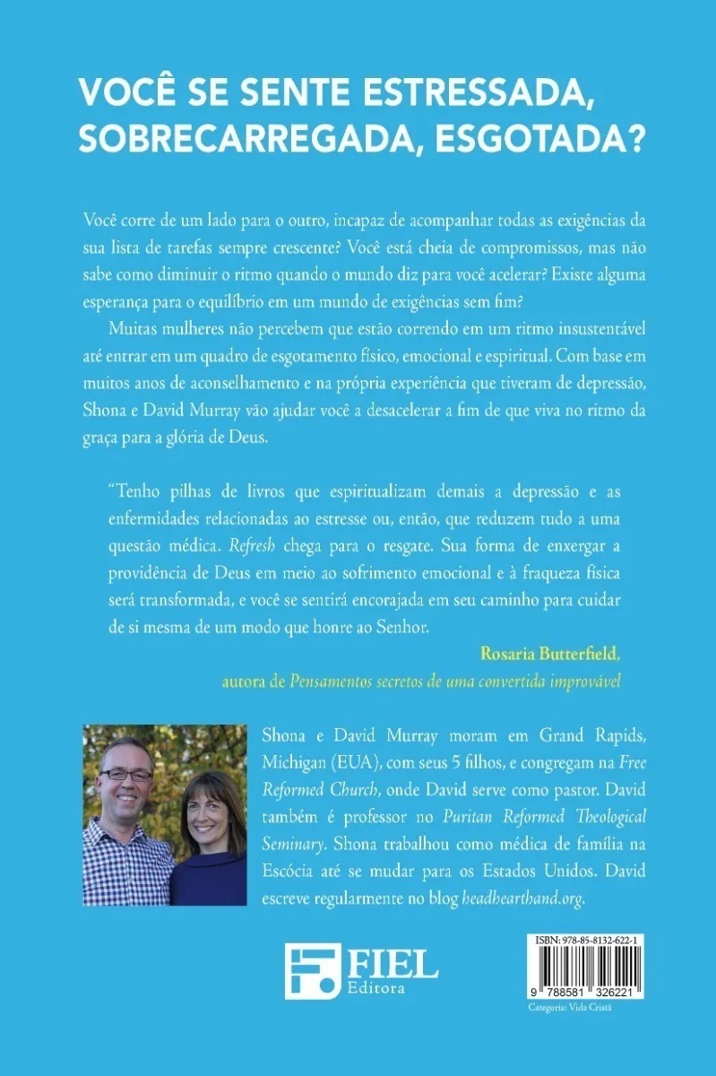 Muitas mulheres não percebem que estão correndo em um ritmo insustentável até entrar em um quadro de esgotamento físico, emocional e espiritual. Com base em muitos anos de aconselhamento e na própria experiência que tiveram de depressão, Shona e David Murray vão ajudar você a desacelerar a fim de que viva no ritmo da graça para a glória de Deus.