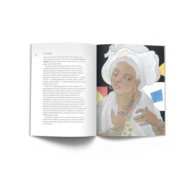 Dois nomes de peso da cultura brasileira, Nei Lopes e Rui de Oliveira, se reúnem para homenagear os pioneiros do samba. Em Tia Ciata, a grande mãe do samba, somos convidados a um passeio de volta ao início do século XX e à Pequena África, região no centro do Rio de Janeiro que foi palco de transformações que marcaram a cultura de todo o país. Como guias desse passeio, temos a graciosa personagem fictícia Boneca e ninguém menos do que o próprio Nei Lopes, que se torna também personagem e trava com Boneca um delicioso diálogo sobre música, religião, tradição, Carnaval e muito, muito mais. Entremeando essa conversa cheia de histórias e História, algumas personalidades são apresentadas: Heitor dos Prazeres, Pixinguinha, Chiquinha Gonzaga, Plácida dos Santos e, como não poderia faltar, a grande Tia Ciata. Uma obra para se ler ao som de um bom samba e à espera do próximo Carnaval.