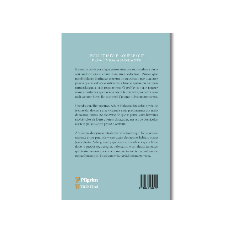 Usando seu olhar poético, Ashley Hales medita sobre a vida de fé convidando-nos a uma vida mais vasta precisamente por meio de nossos limites. Ao contrário do que se pensa, essas barreiras são bênçãos de Deus a serem abraçadas, em vez de obstáculos a serem pulados com pressa e correria. A vida que desejamos está dentro dos limites que Deus amorosamente criou para nós ? nos quais ele mesmo habitou como Jesus Cristo. Ashley, assim, ajuda-nos a reconhecer que a liberdade, o propósito, a alegria, o descanso e os relacionamentos que tanto buscamos se encontram precisamente na moldura de nossas limitações. Eis aí uma vida verdadeiramente vasta.